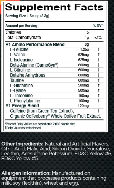 Rule 1Available in a variety of refreshing fruit flavors, one scoop delivers a 6g amino acid blend and about as much caffeine as a cup of brewed coffee.