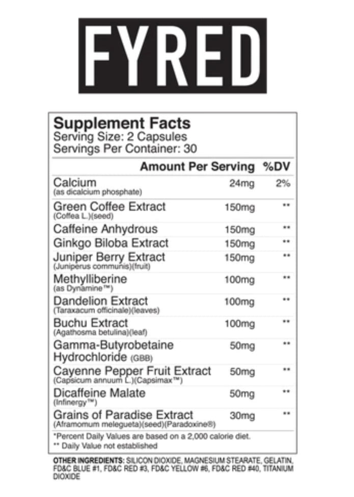 FYRED IS A POWERFUL CAPSULE-BASED FAT BURNER THAT’S SPECIFICALLY FORMULATED TO BUST THROUGH ANY WEIGHT-LOSS PLATEAUS. WITH EFFICACIOUS DOSES OF 11 INGREDIENTS (INCLUDING 4 PATENTED INGREDIENTS), FYRED IS ONE OF THE MOST COMPREHENSIVE FAT BURNERS ON THE MARKET.