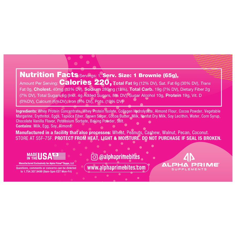 Say hello to "Prime Bites® Protein Brownies" - your tasty sidekick ready to supercharge your day with a wholesome punch of protein. Each brownie is a delightful treat that packs in premium whey protein, and surprise, it even kicks the unnecessary sugar to the curb!