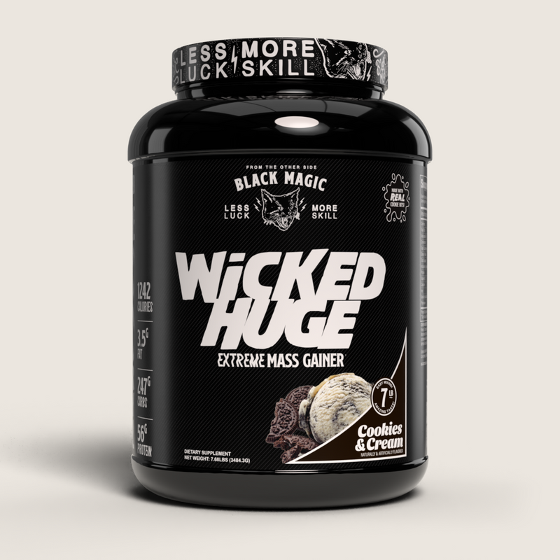 Take charge and get WICKED HUGE with our super premium mass gainer formulation. With over 1,200 calories, 247 carbohydrates, and 54 grams of premium protein our new mass gainer formulation puts you in control of getting huge. This calorie packed formulation is designed to help you pack on size like never before. We all know food is a major player when it comes to adding size but what happens when food just isn't enough. This is where wicked huge comes into play to assist you in getting the extra calories you need.