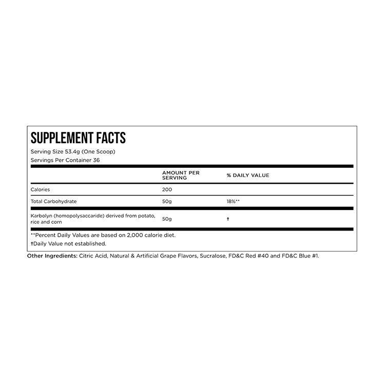 Karbolyn is absorbed into the bloodstream like a simple sugar but without the typical crash caused when your muscles run out of fuel. It has also been shown to be absorbed as quickly as pure Dextrose (a simple carbohydrate). Yet, it still provides sustained energy without crashing.