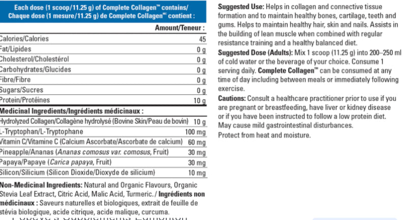 Mix 1 scoop (11.25 g) into 200-250 ml of cold water or the beverage of your choice. Consume 1 serving daily. Complete Collagen can be consumed at any time of day including between meals or immediately following exercise.