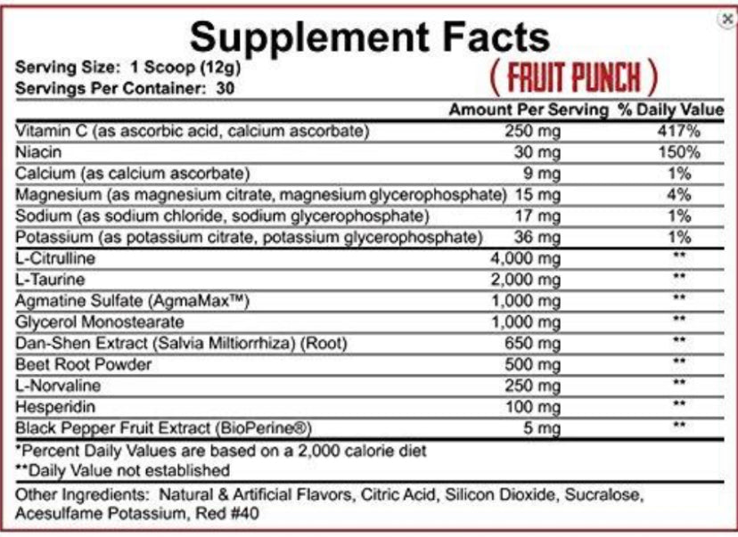 Amino Acid Type: Arginine, Citrulline Malate, Taurine, Vitamin C