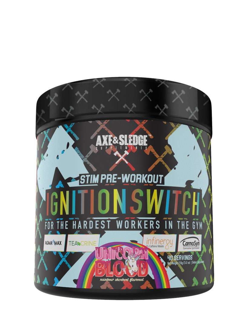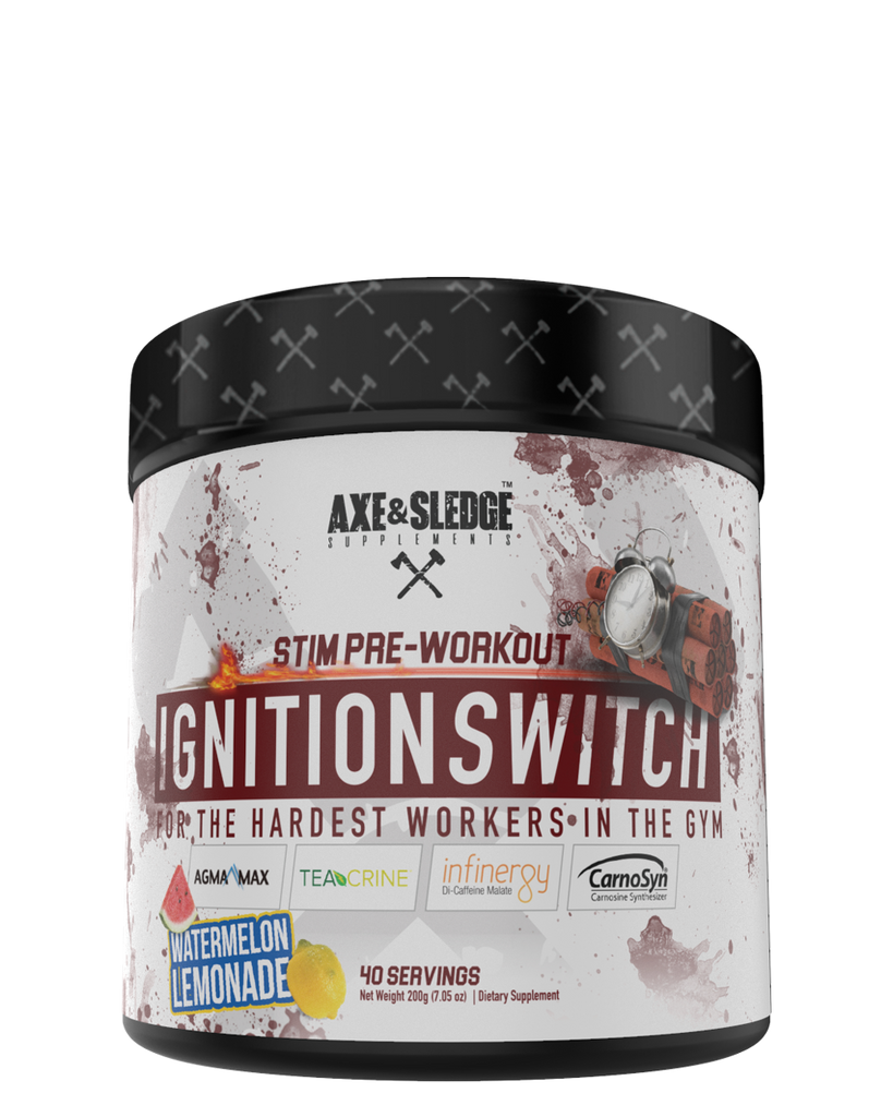 WHEN IT’S TIME TO FLIP THE SWITCH, YOU CAN COUNT ON IGNITION SWITCH FROM AXE & SLEDGE TO DELIVER! IGNITION SWITCH IS OUR STIMULANT-BASED PRE-WORKOUT THAT WAS FORMULATED FOR THE HARDEST WORKERS IN THE GYM.