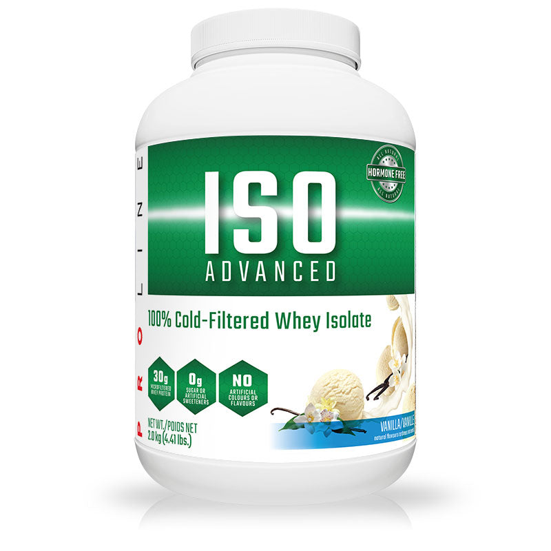 ISO ADVANCED NATURAL is free of any artificial sweeteners, flavours or colours and uses only pure Cold-Filtered Whey Protein Isolate 90%, no added amino acids, no creamers, no soy and is sugar free, low in or fat free and no hormones. ISO ADVANCED whey protein isolate contains only the highest rated Biological Value (BV) protein available and is easily and rapidly digested. High in naturally occurring key amino acids L-Glutamine and BCAA’s that help stop and reverse the damage from training to help you build quality muscle and increase recovery time. All PROLINE products deliver full disclosure of all ingredients and clinically proven doses so you know exactly what you’re getting every time and we have even taken the unprecedented step of listing not just the grade of protein used, but how much is used.