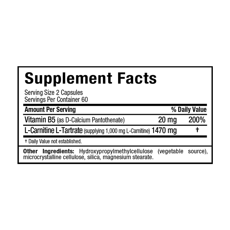 L-Carnitine is essential for transporting long-chain fats into the cell (mitochondria). L-Carnitine taps into your fat supply and may provide support to burn it as fuel, resulting in increased energy. Without L-Carnitine, these fats cannot be burned for energy and are instead shunted to stored body fat.