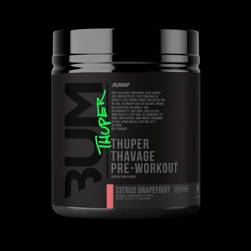 CBUMThavage Pre is not your run of the mill pre-workout. It was designed by thavages for thavages to take your performance to the next level. Our formula has been engineered with some of the market's best and most trusted ingredients like L-Tyrosine, Beta Alanine, Arginine Nitrate, Huperzine A, Alpha GPC, and Bitter Orange. These ingredients aid in improved cellular hydration, mental focus and energy, blood flow and fat burning.